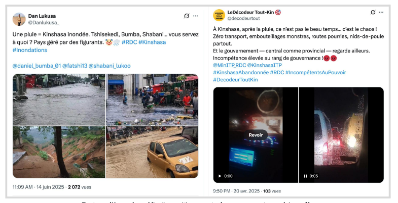 Ce type de narratif, souvent viral, transforme les réseaux sociaux en espace de contestation politique. Ces commentaires qui ne se limitent pas aux accusations et aux plaintes, constituent un acte de participation civique et une tentative de rendre visible le quotidien des kinois à travers le prisme de leur colère face aux effets du changement climatique.