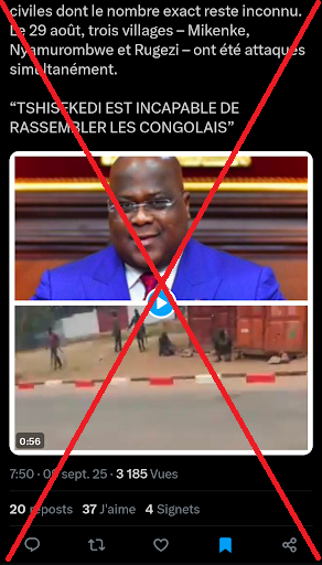 Une publication diffusée sur le réseau social X affirme que le Président de la République démocratique du Congo, Félix Tshisekedi, aurait ordonné l’exécution de membres de la communauté Banyamulenge. Après vérification, ces allégations, susceptibles de nuire au vivre-ensemble, ne sont étayées par aucune preuve.